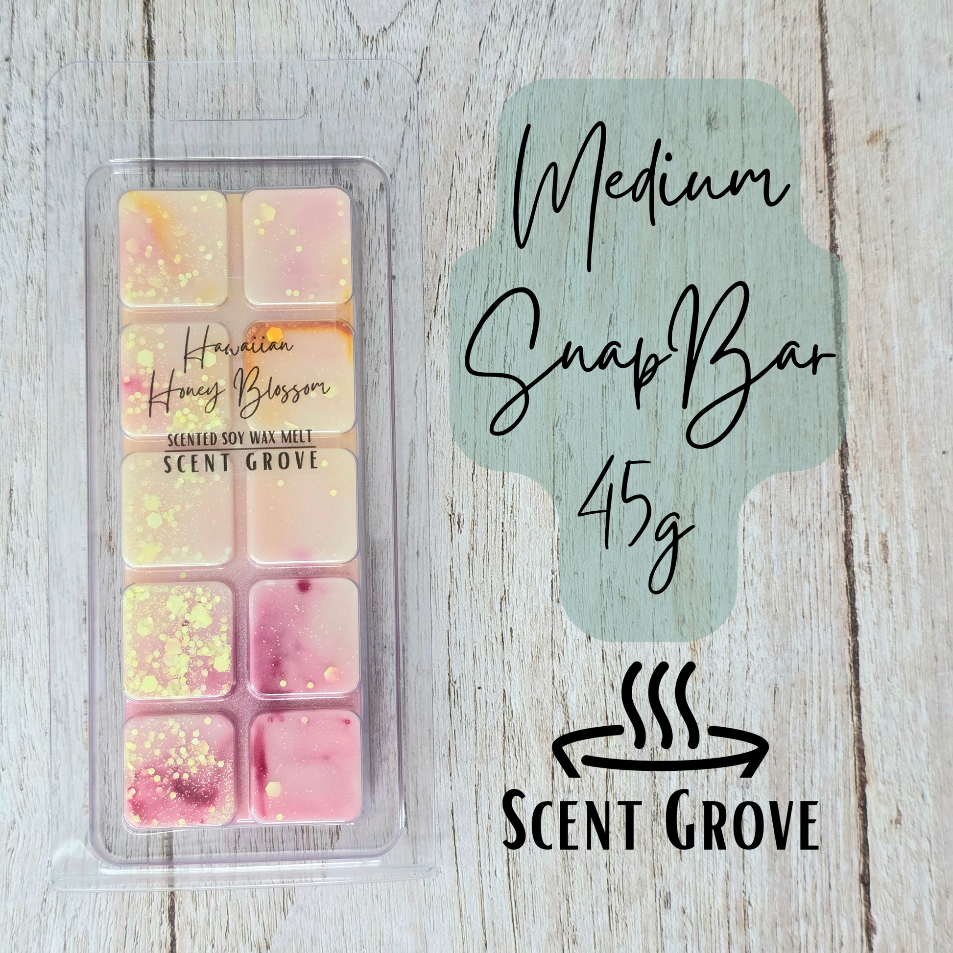 Scent Grove wax melts are hand poured in New South Wales from natural soy wax and Australian made fragrance oils. All Scent Grove soy wax products are made in small batches, therefore every one looks unique in its own way, but the quality is consistently the same. The soy wax used at Scent Grove to manufacture wax melts is non-toxic, burns clean, and is loaded with the highest amount of fragrance oil to ensure that the wax melts have a strong and lasting scent. Please note that scent throw and burn time varies per scent, as some are naturally stronger smelling than others.